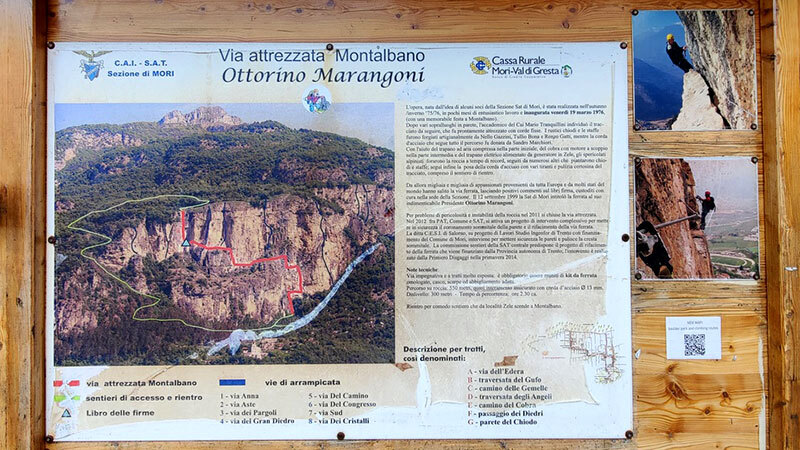 Ekipa ferratowa ruszy na wschód szlakiem F20, a miasteczko opuści w stronę północną szlakiem 670. Miniemy ruiny zamku Castel Albano. Po pół godzinie będziemy już zakładać na siebie szpej. Przed nami Ferrata Monte Albano (kat.D, ⌛2h▲220m) Już na starcie będzie siłowo i pionowo, to jedna z trudniejszych ferrat nad Gardą, ma sportowy charakter wymagający siły, wytrwałości i odporności na ekspozycje ;) Na trasie wiele klamer i stalowych stopni, ale trzeba na niej już porządnie powalczyć :) Na żelaznej perci spędzimy przynajmniej 2h, a potem lajcikowe zejście w niecałą godzinkę domykając pętelkę do Mori i na parking.